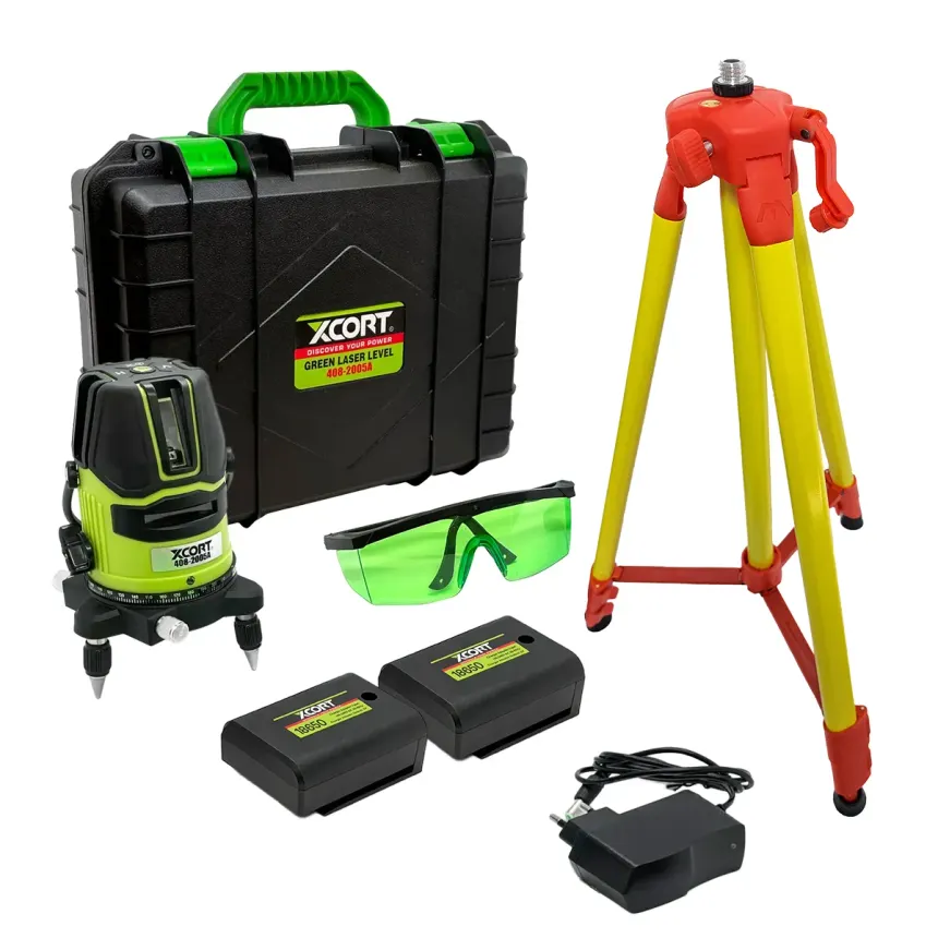 Niveau laser vert 4D XCORT, 5 lignes + trépied